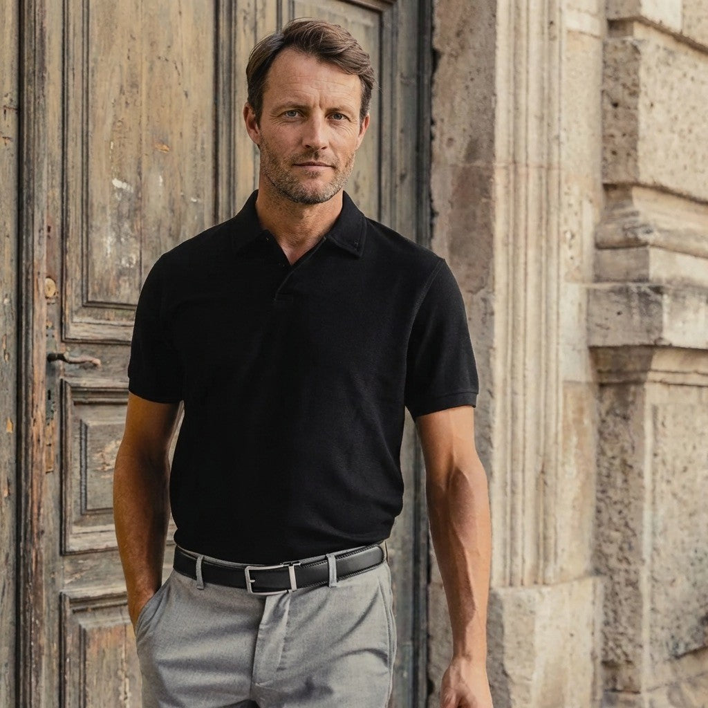 Hochwertiges Leder mit sauberer Kante und einer robusten Automatik-Schnalle - gemacht für den täglichen Einsatz und einen Look, der auch nach Monaten noch gepflegt wirkt.